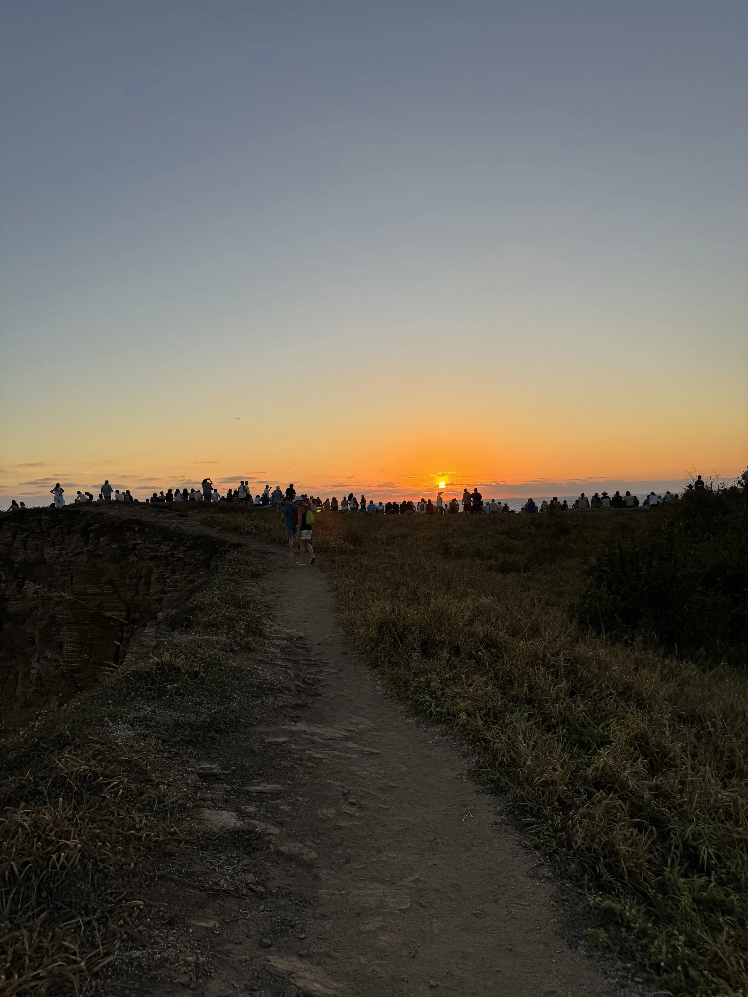 There are a few different paths you can follow and spots to watch the sunset, with the majority of visitors following the trails to the left, leading you the furtherest way out over the ocean. At the end there are few benches facing West and plenty of spots to perch and enjoy the big, daily event.